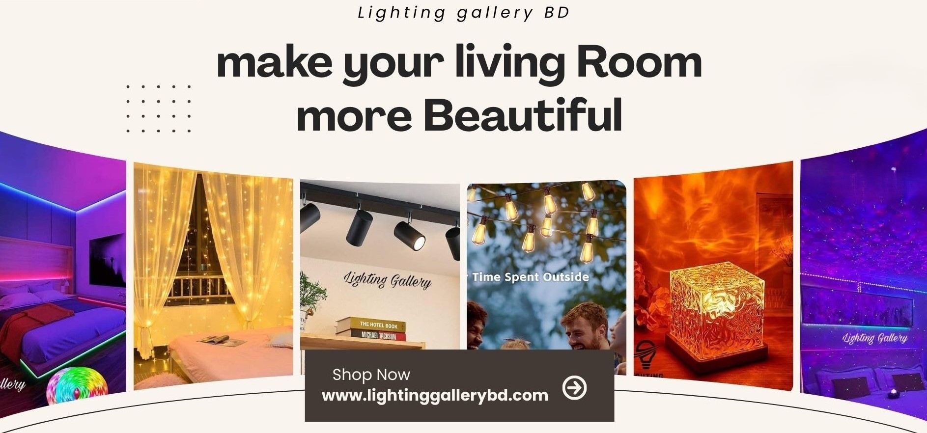 আমরা আধুনিক ও নান্দনিক Home Decor এবং Lighting Products বিক্রি করি। এর মধ্যে রয়েছে LED lights, fairy lights, neon lights, decorative lamps, wall lights, room décor lights এবং আরও অনেক স্টাইলিশ আইটেম, যা আপনার ঘরকে আরও সুন্দর ও আরামদায়ক করে তুলবে।